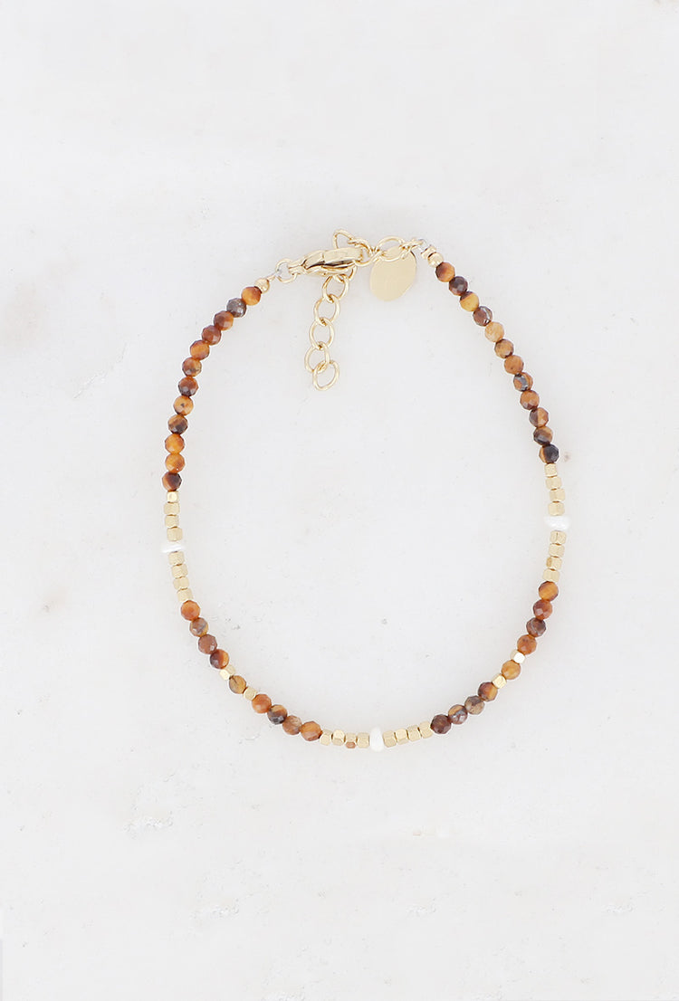 Bracelet sur fil orné de pierres naturelles, de perles d'eau douce et de perles en acier inoxydable. Longueur de la chaîne : 16cm Longueur de la chaîne de réglette: 3cm Longueur du bracelet : 19cm Garantie sans nickel, sans cadmium, sans sel de plomb. Résiste à l’eau et ne noircit pas. Étant des pierres naturelles, leurs couleurs et leur taille peuvent varier d’une pierre à l’autre.