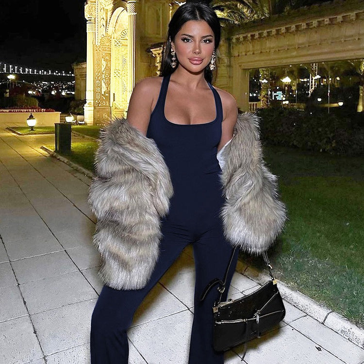 Combinaison pantalon boot Cut , à bretelles, décolleté carré, moulante et stretch